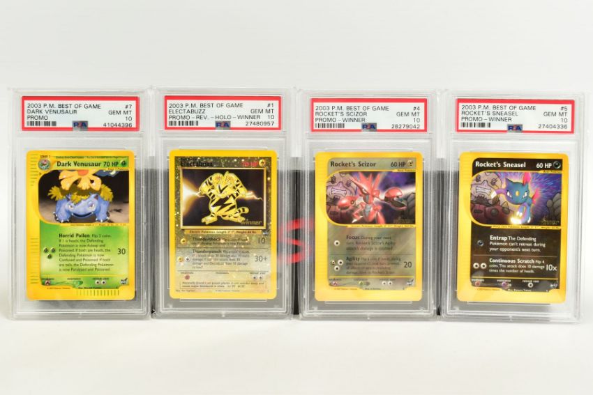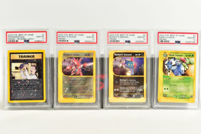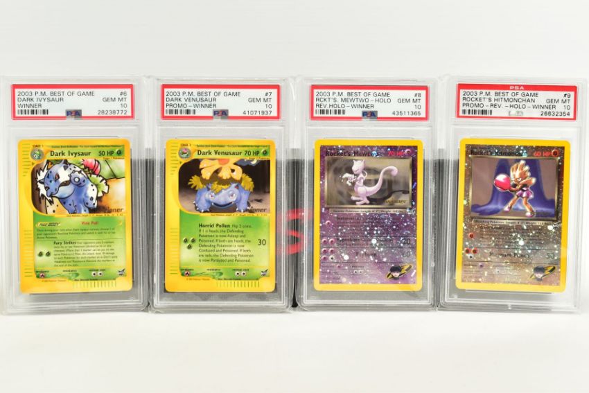 A QUANTITY OF PSA GRADED POKEMON BEST OF GAME CARDS, all are graded GEM MINT 10 and are sealed in PSA plastic cases with cellophane outer sleeves, to include Rocket's Mewtwo Reverse Holo Winner (8) and Rocket's Hitmonchan Reverse Holo Winner (9), includes Promo cards, (14 cards)