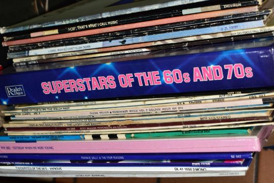 TWO BOXES OF OVER THREE HUNDRED SINGLES RECORDS AND OVER FORTY LP'S, singles artist include Bobby Darin, Frank Ifield, Elvis Presley, The Equals, Labi Siffrie, Billy Preston, Commodores, Lisa Stansfield, Marillion, Judas Priest, Junior, Shaking Stevens, Kim Mazelle, Paul Young, Lloyd Cole, etc and the LP's include Easy Listening, Abba, Musicals, Compilations, Cat Stevens, Elkie Brooks, Lionel Ritchie, etc (two boxes)