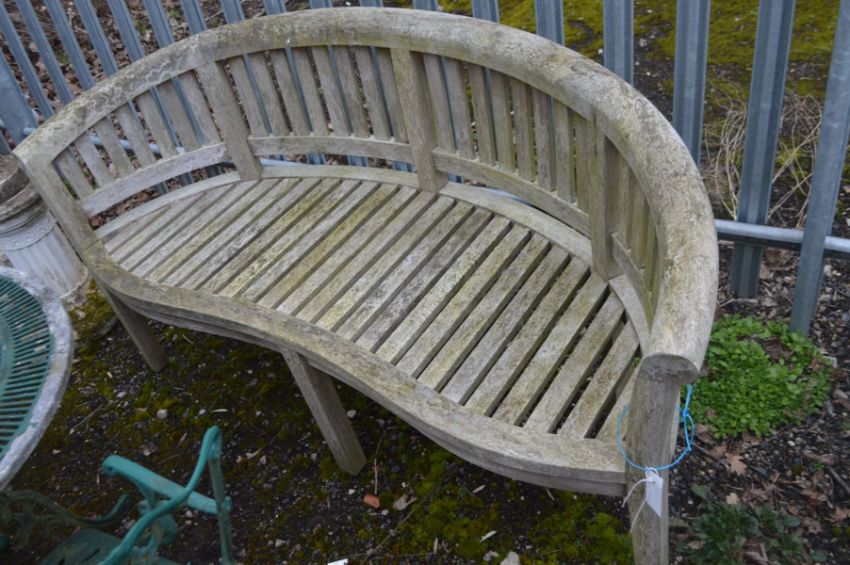 A TEAK BANANNA BENCH, width 160cm x depth 60cm x height 84cm