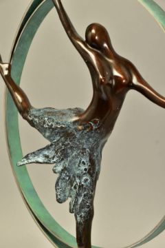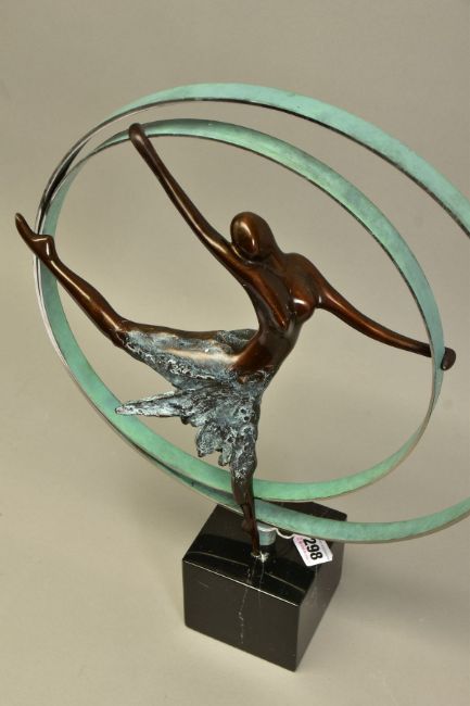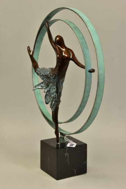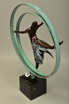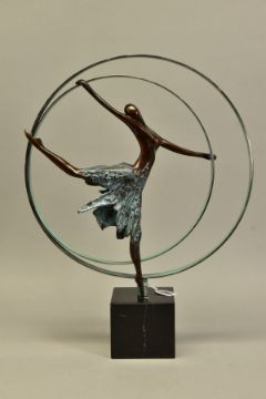JENNINE PARKER (BRITISH CONTEMPORARY) 'ELEVATION', a limited edition bronze sculpture of a dancer 34/195, impressed initials, no certificate, with box, approximate height 48cm, (Condition Report:- dancers foot is loose and has scratched the granite plinth, packaging is incomplete) (ARR)