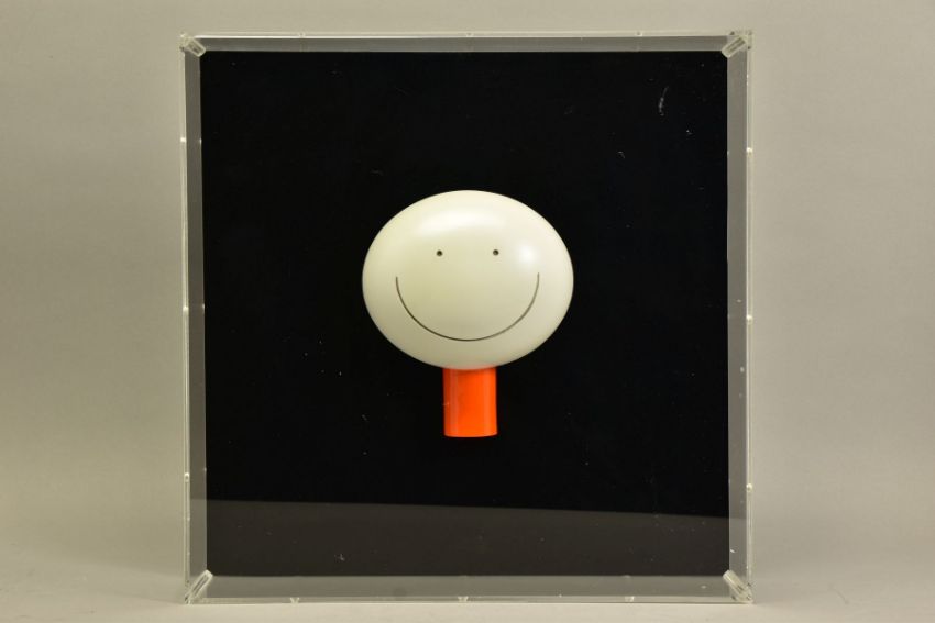 DOUG HYDE (BRITISH 1972) 'THE SMILE' a cold cast porcelain sculpture of a smiling face, no edition number or certificate, approximate size of perspex box 40cm x 40cm, comes with box (Condition Report:- outer packing carton is tatty) (ARR)