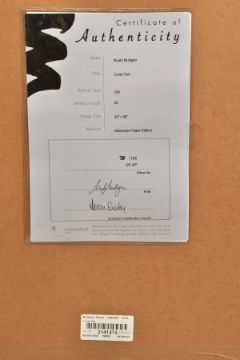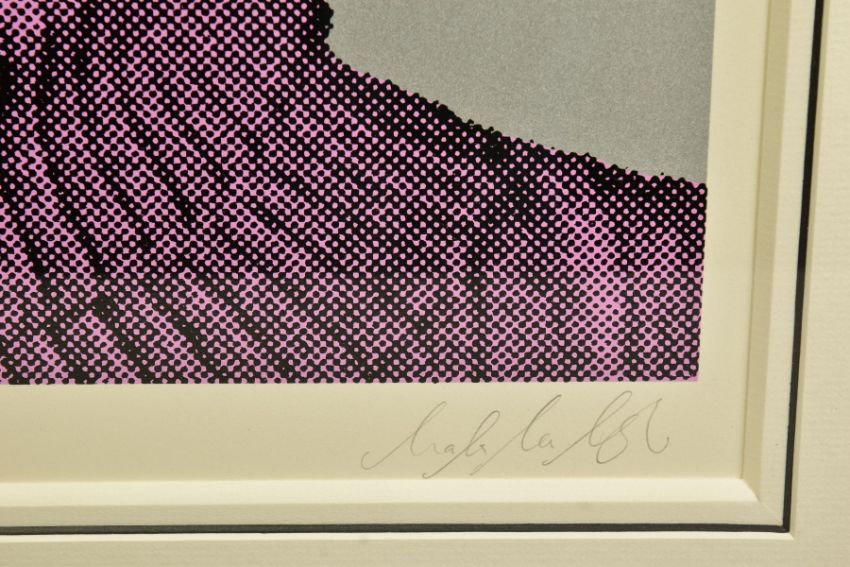 NUALA MULLIGAN (BRITISH CONTEMPORARY) 'COVER GIRL', a limited edition print of 1960's icon Twiggy 36/195, signed to lower margin, with certificate, approximate sizes image 70cm x 53cm, frame 97cm x 79cm (Condition Report:- frame dented, chipped and scratched) (ARR)