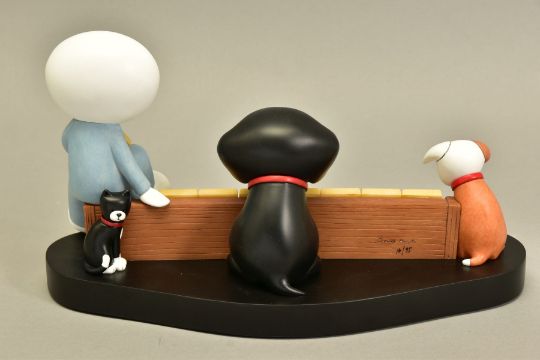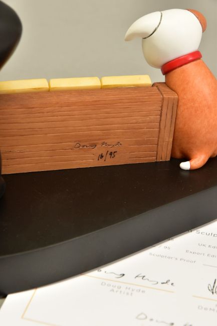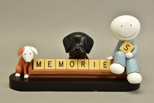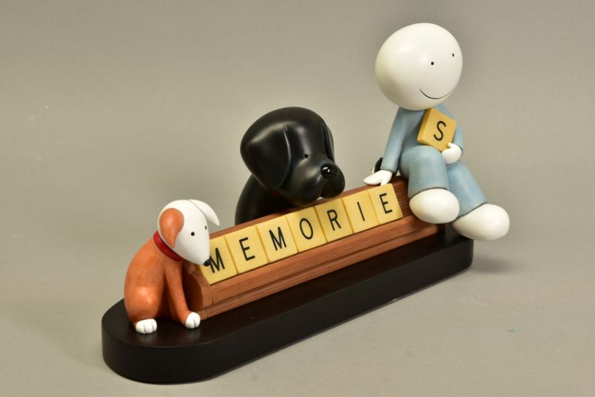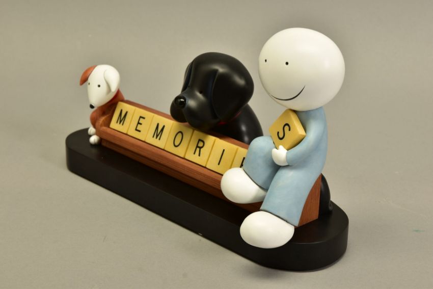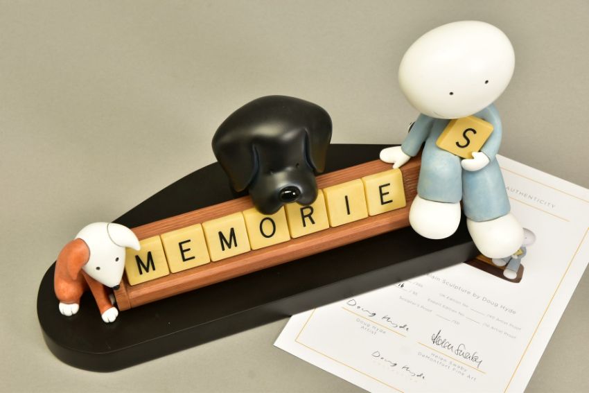 DOUG HYDE (BRITISH 1972) 'MEMORIES', a limited edition sculpture of a boy and his pets 16/95, impressed signature, with certificate, approximate height 17cm, (Condition report:- faint mark to paint at the back of boy's head, outer packing carton is tatty) (ARR)