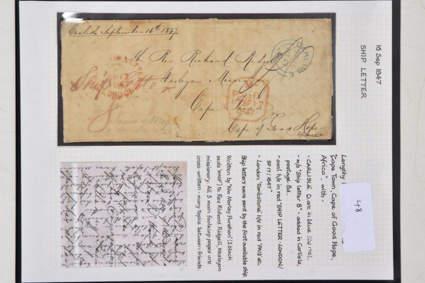 SHIP LETTER FROM CARLISLE TO CAPE OF GOOD HOPE 1847 8d rate