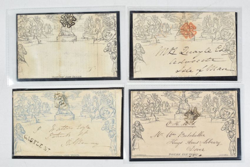QUARTET OF 1840 MULREADY WRAPPERS, penny A22 Red MX, Penny A57 Black MX, Penny A240 O.H.M.S black MX, two Penny A197 VERY LATE USEAGE 1847
