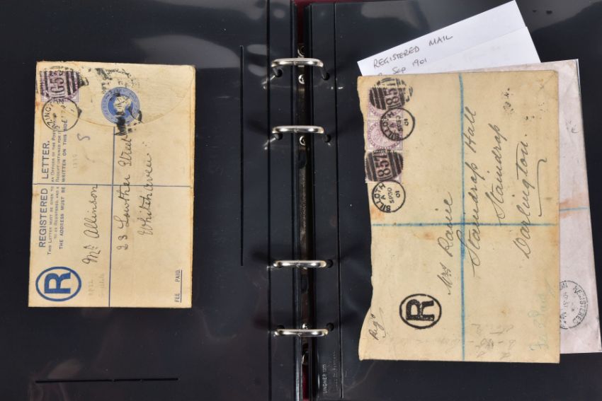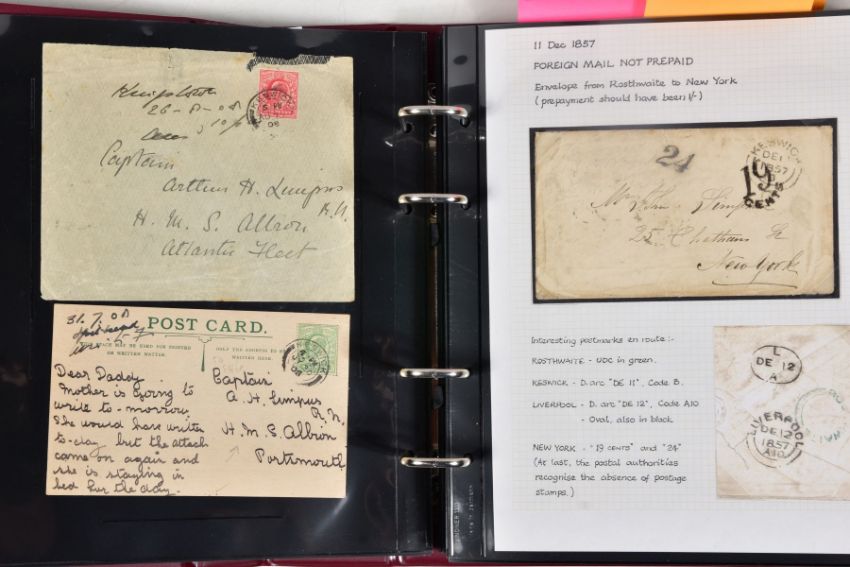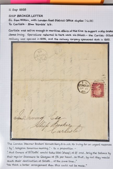 GB POSTAL HISTORY COLLECTION from 1840's to 1930's with many better covers and markings, approximately fifty six covers, note embossed shilling covers x 2, surface printed to one shilling