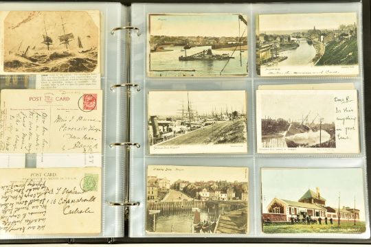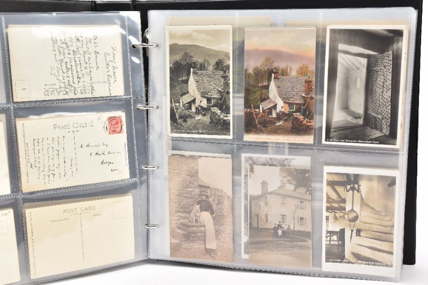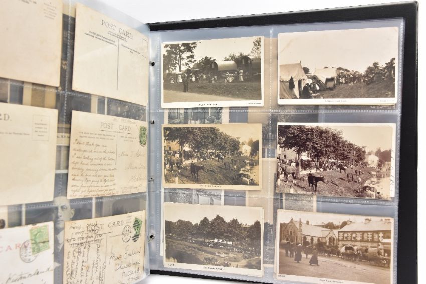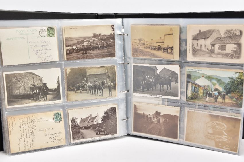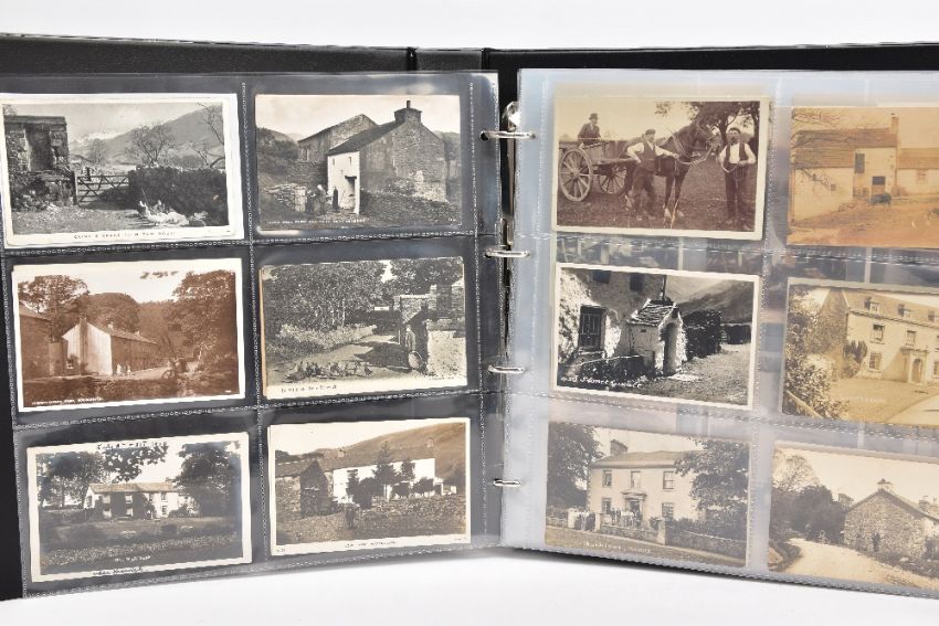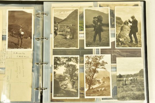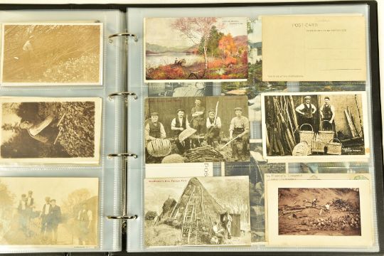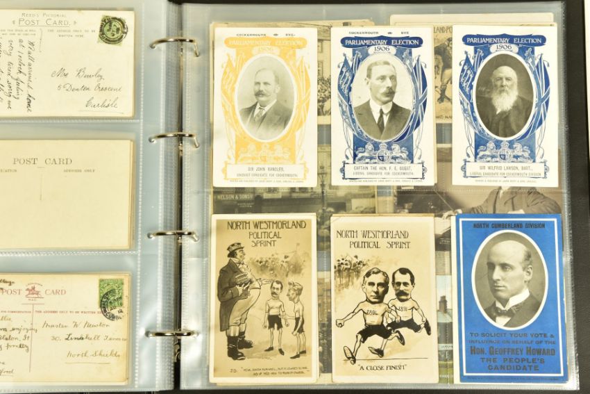 POSTCARDS: CUMBRIA AT WORK, a collection of approximately 385 Postcards and Photocards in one Album, thematically relating to working occupations in Cumbria the cards date from the Edwardian era / early 20th Century and feature some unusual and rare examples. Professions include Farming and Markets, Quarrying, Lead and Coalmining, Brass, Iron and Steel Works including the Vickers' Works, Spinning and Weaving Mills, Blacksmiths and Woodcutters, Fishing, Docks and Harbours including Ship launches, Sanatoriums, Schools and Colleges, Courts, Police and Army, including a rare card showing the Military funeral of Gunner Newell 33rd RFA, killed by lightning 11th June 1912, there are also several postcards of the Appleby New Fair and several Churches, publishers of the cards include Mayson's 'Autochrom', G.P. Abraham, Sankey's, F. Frith, Brittain and Wright, Morland Braithwaite and Pettit's Prize Medal Services, amongst others, most cards are in good, very good or excellent condition.
