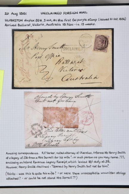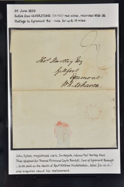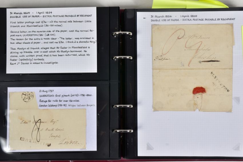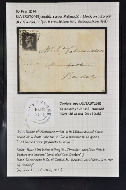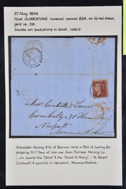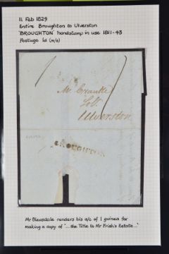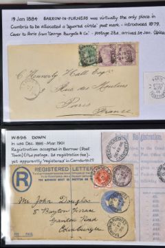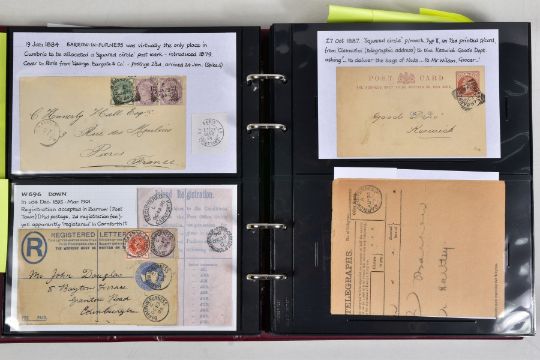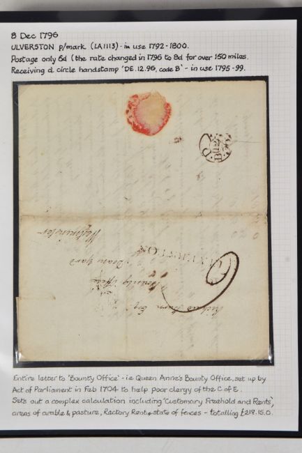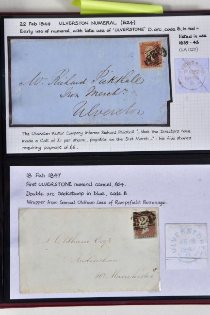 SOUTH WEST CUMBRIA POSTAL HISTORY COLLECTION with postmark and better postcard interest, good early Ulverstone marks including skeleton, Penny Black on cover, approximate one hundred and seventy items