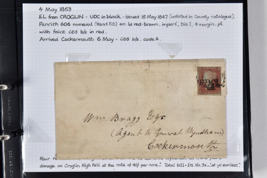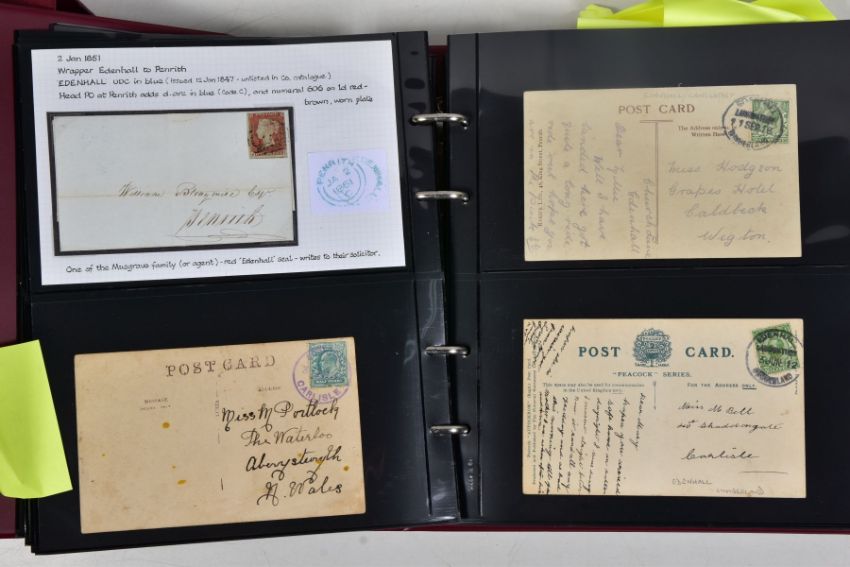 COLLECTION OF POSTAL HISTORY RELATING TO LOWER EDEN VALLEY (Cumberland) rare post offices noted Lazonby, Kirkoswald etc, later specialist interest in postmarks and postcards, approximate one hundred and eighty