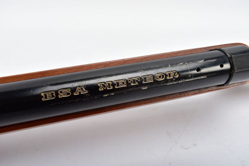 A .22'' B.S.A. METEOR AIR RIFLE serial number TH66665, some areas of varnish loss to stock and general wear and tear, the barrel has areas of scuffing and scratches, it is in working order (PURCHASER MUST BE 18 YEARS OR OLDER)