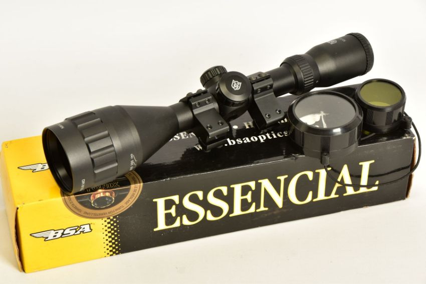 A NIKO STIRLING 3.9 X 50 RIFLE SCOPE and mounts, it appears to be in unused condition