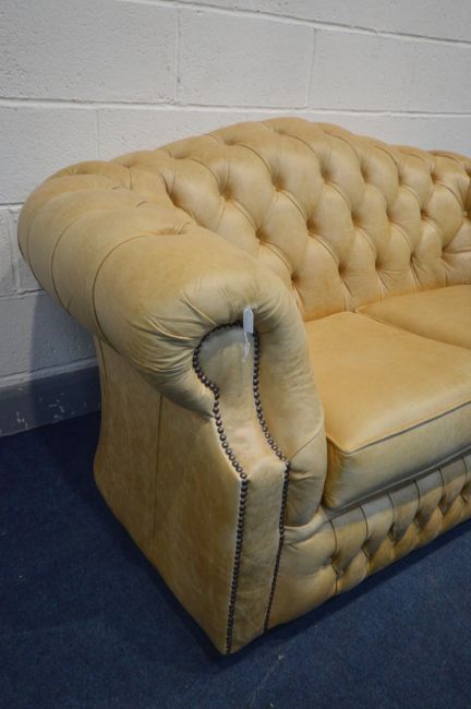 A TAN LEATHER CHESTERFIELD SOFA, inner width 99cm x 162cm