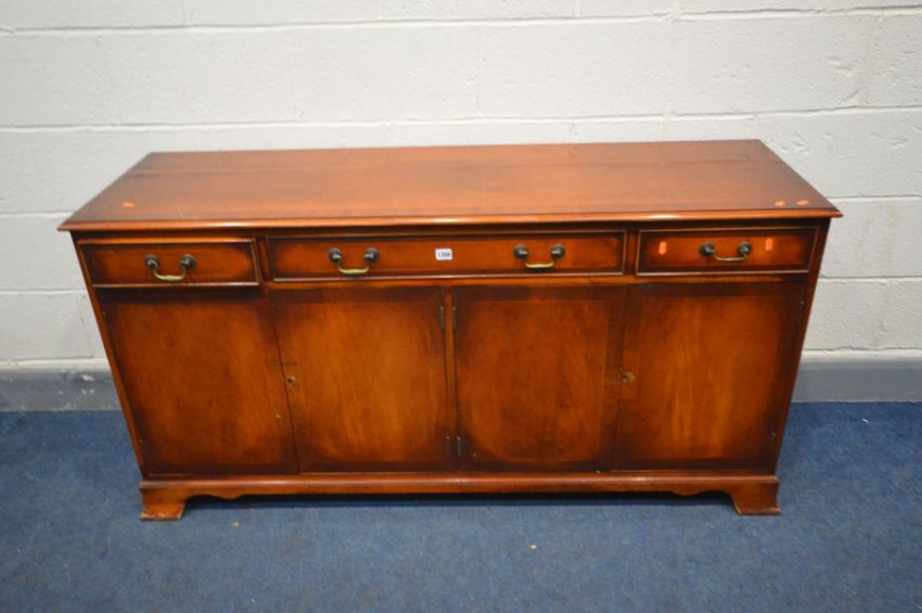 A MAHOGANY SIDEBOARD with three drawers, width 154cm x depth 46cm x height 78cm