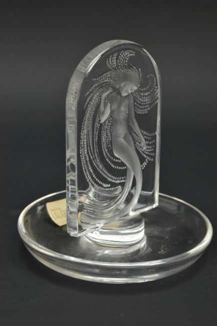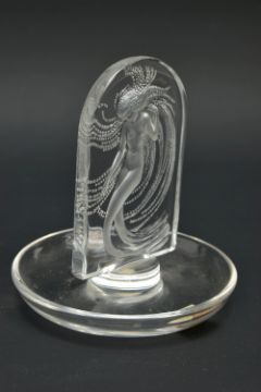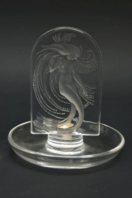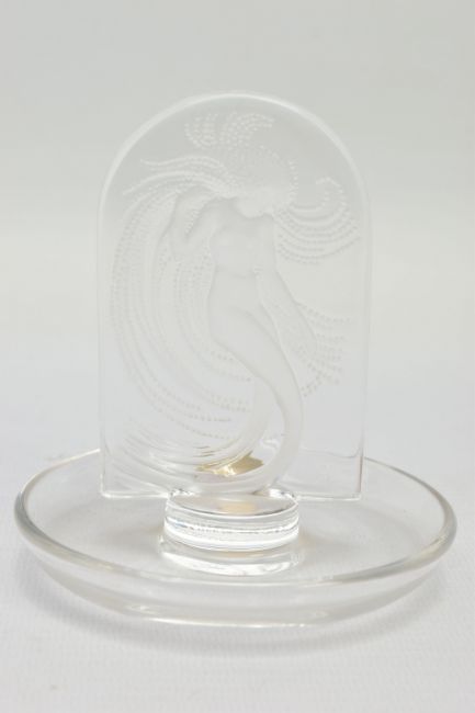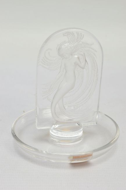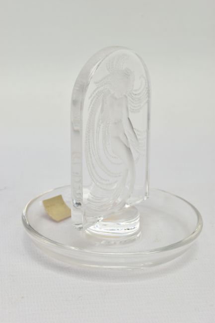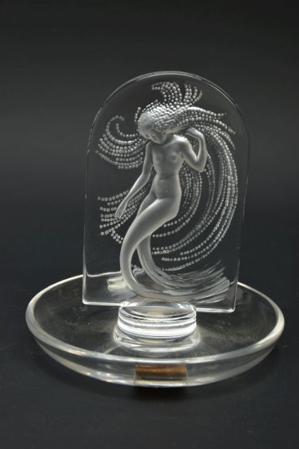 LALIQUE, 'NIAIDE'' A CLEAR GLASS PINTRAY, depicting a mermaid figure, relief moulded on the obverse, engraved signature to the base, height approximately 10cm (Condition report: no obvious damage)