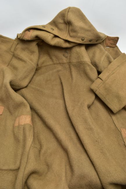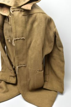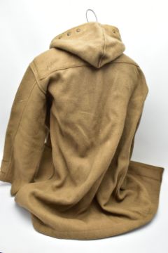 A ROYAL NAVY FOUL WEATHER WW2 PATTERN OFFICERS DUFFEL COAT , (Camel) with hood, toggle fasteners, etc