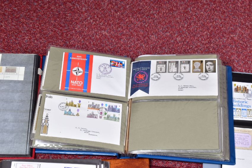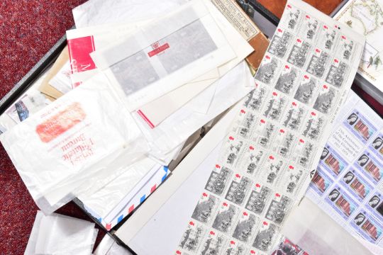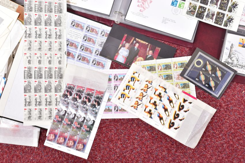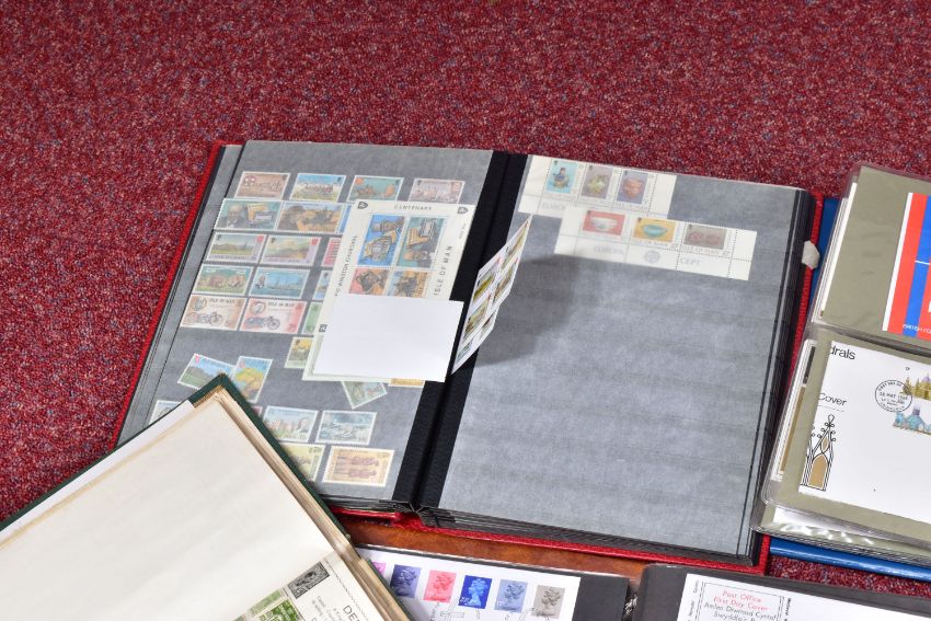 LARGE COLLECTION OF MAINLY GB OR IOM STAMPS, We note ranges of GB FDCs from late 1960s to 1980s, GB face value in packets, Mint IOM in packets with values to £5 seen and a mint commonwealth collection in a stockbook with some good thematics content and an interesting older collection in a movaleaf album