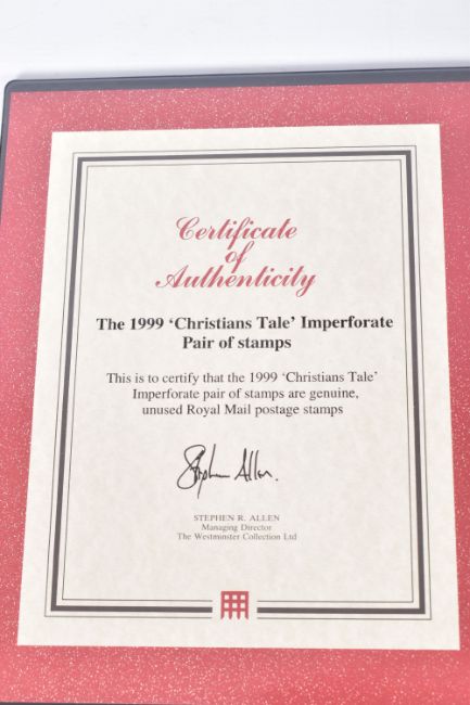 GB 1999 CHRISTIANS TALE 19p IMPERFECT PAIR SG 2115a, fine MNH in Westminster folder, supplied with normal