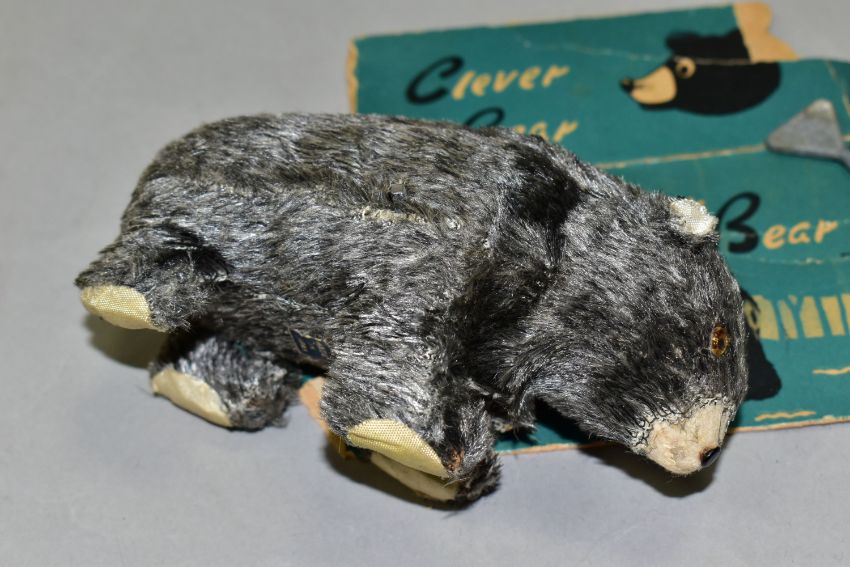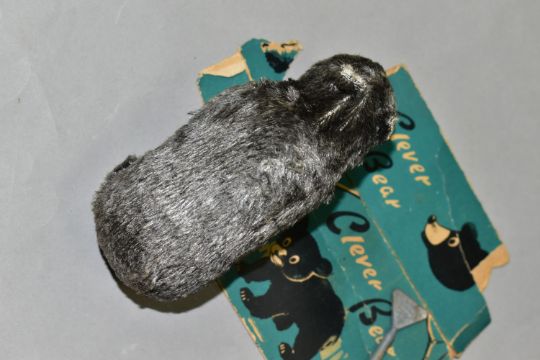 A T.N. CLOCKWORK 'CLEVER BEAR' TOY, made in Japan, height 6.5cm x length 12cm, with partial box (missing end flaps, damaged) and non-original Triang key (1) (Condition report: bear appears in generally good working condition, sd and as stated)