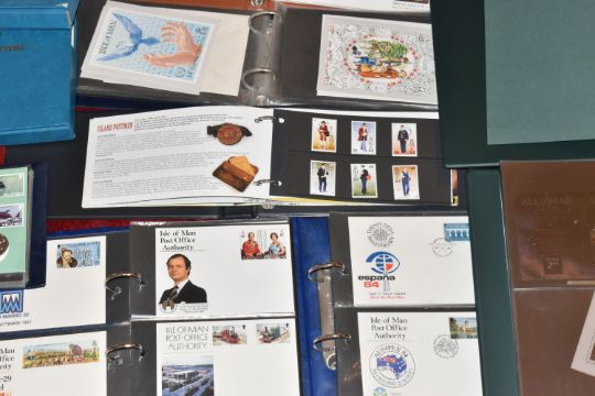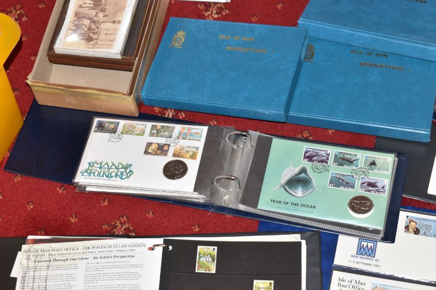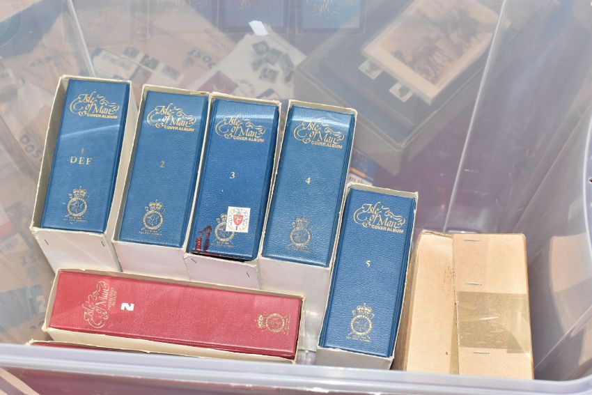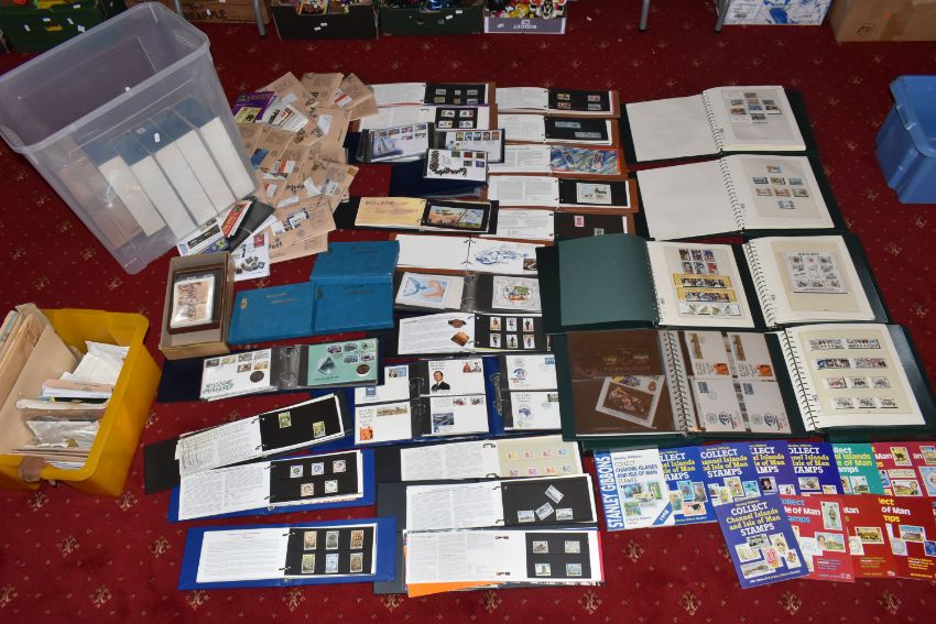 IMPRESSIVE COLLECTION OF ISLE OF MAN STAMPS IN THREE BOXES, we note stamps in mint, used, fdc, presentation pack, PHQ and booklet format as well as an album of PNC including a couple of Christmas 50p types. Typically housed in expensive albums to approx 2000, thence in envelopes form the new issue service to approx 2007. Lovely condition and high original cost