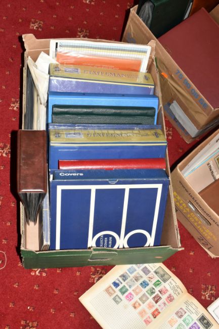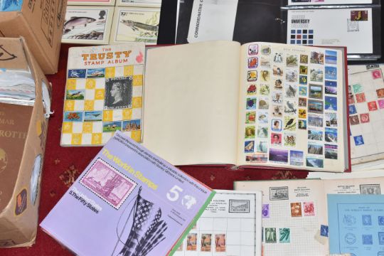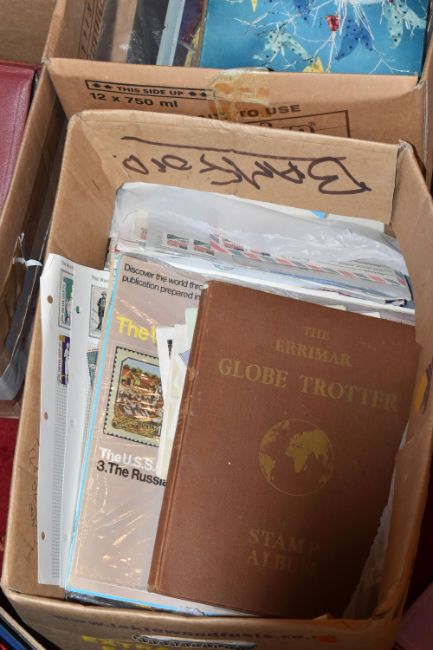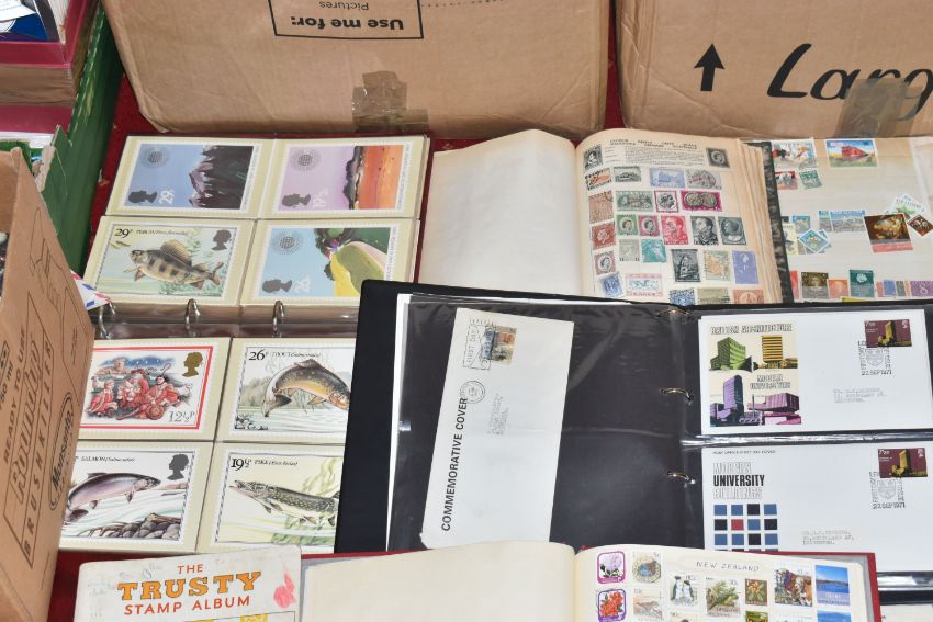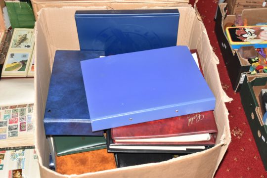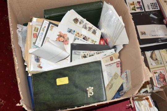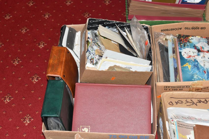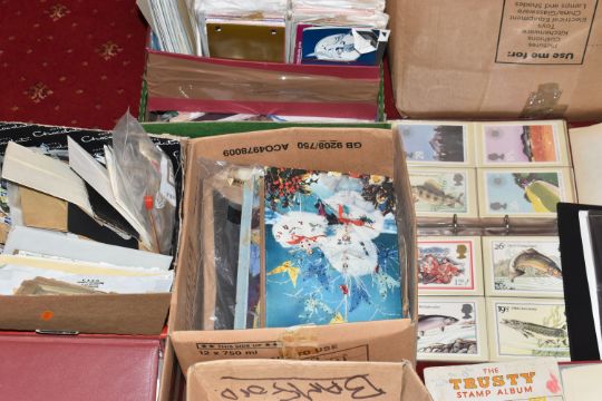 MASSIVE ACCUMULATION OF STAMPS IN EIGHT BOXES, comprises single country collections, duplicates in stock books, covers, omnibus types, presentation packs (mainly IOM or CI but GB noted too), we did spot a silver medallic cover, very many thousands to sort