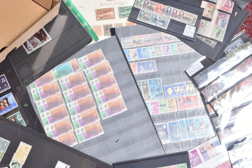SHOE BOX OF STAMPS ON STOCKCARDS, ALBUM PAGES OR IN PACKETS, we note wildings 2d complete coil, north Borneo imperfs etc