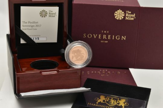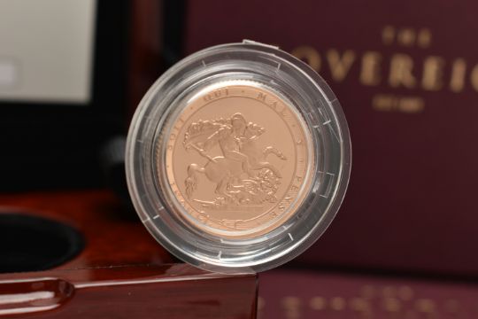 A ROYAL MINT BOXED GOLD PIEDFORT PROOF GARTER LIMITED EDITION REVERSE SOVEREIGN COIN, mintage 3500