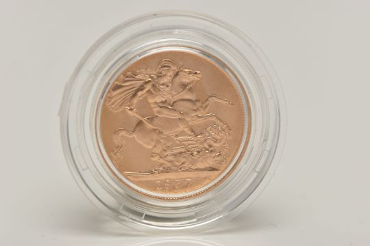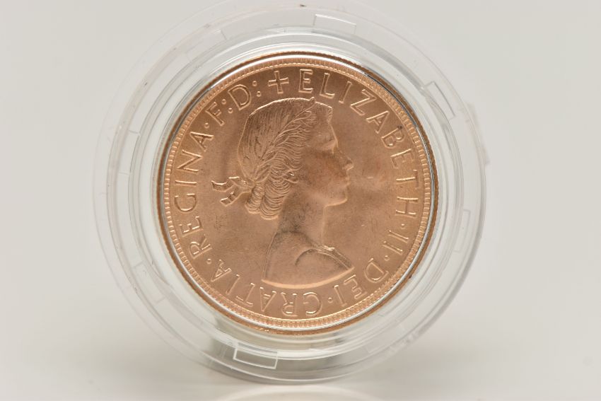 ROYAL MINT FULL GOLD SOVEREIGN COIN QUEEN ELIZABETH II 1957, .916 fine, 7.98 gram, 22.05mm Mintage 2,072,000 (as struck)