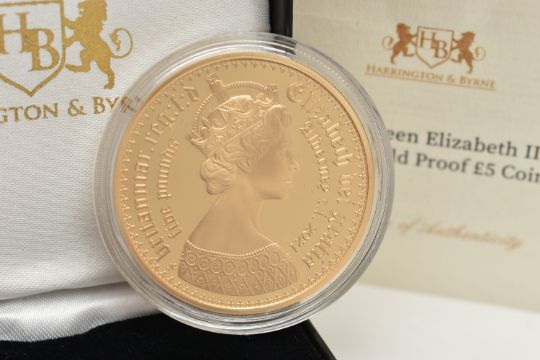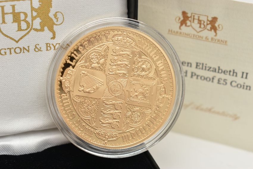 A BOXED 2012 QUEEN ELIZABETH II GOTHIC GOLD PROOF FIVE POUND COIN
