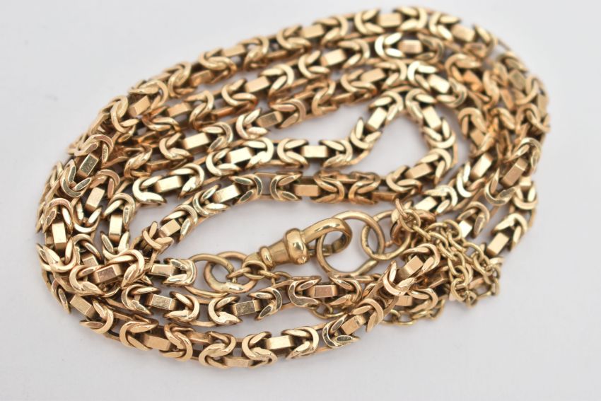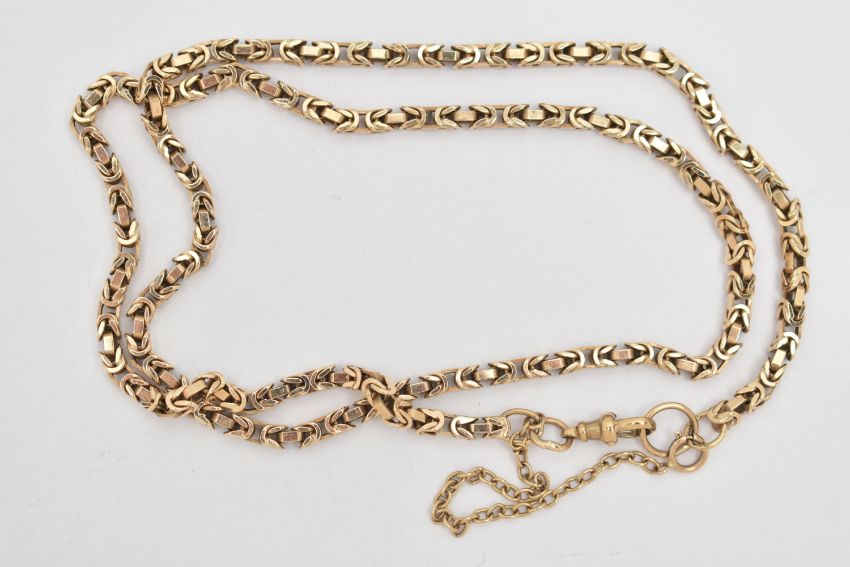 A 9CT YELLOW GOLD NECKLACE, designed as a Byzantine chain with lobster claw clasp, hallmarked 9ct gold Birmingham 1998, approximate length of chain 530mm, approximate gross weight 25.45 grams (condition report: overall condition very good)