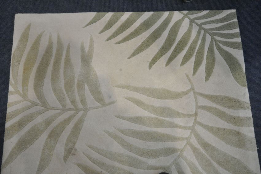 A MODERN CHERRYWOOD SIDE TABLE, with one drawer and two dummy drawers, width 122cm x depth 40cm x height 70cm, and modern patterned rug (condition report: rugs marked and stained)