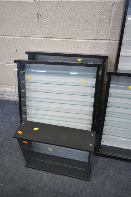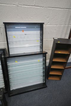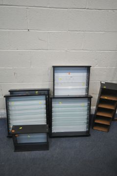 FIVE MODERN DISPLAY CASES, of various different sizes, and a small modern open bookcase (6)