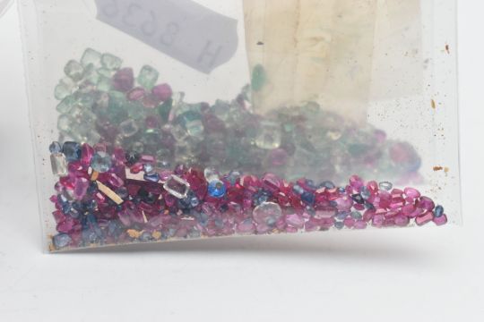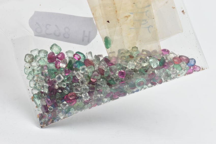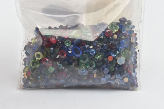 A SELECTION OF EARLY TO MID 20TH CENTURY LOOSE DIAMOND, GEMSTONES, SYNTHETIC GEMSTONES, GARNET TOPPED DOUBLETS AND PASTE, to include one rose-cut diamond, measuring approximately 5.55mm by 3.10mm, weighing approximately 0.18cts, a small selection of calibre cut synthetic rubies, a selection of pale green beryl, faceted rock crystal, one soude stone measuring approximately 4.6mm to 4.0mm, a collection of garnet topped doublets measuring approximately 7.8mm to 1.7mm diameter and various coloured paste (condition report: overall condition very good to fair, some gemstones chipped or broken)