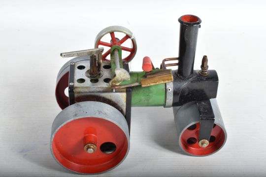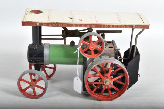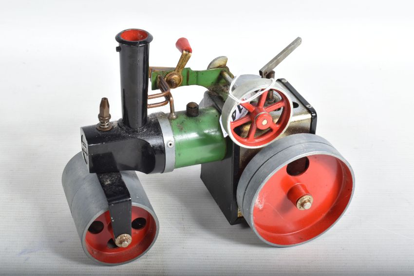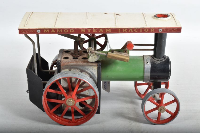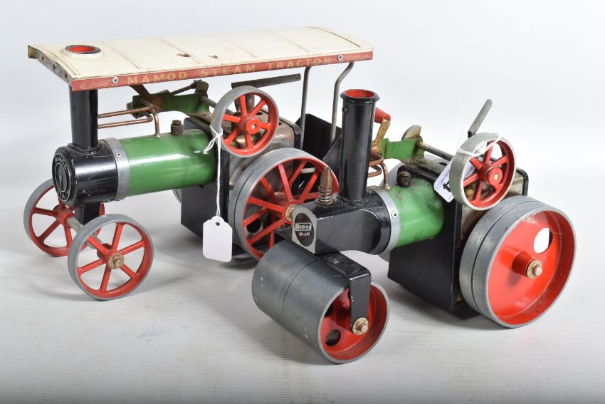 TWO UNBOXED MAMOD LIVE STEAM ENGINES, Traction Engine, No.TE1A and Roller, No.SR1, not tested, both in playworn condition with some paint loss, surface rusting, marking and wear, both have been fired up and run but possibly not for some time, Traction Engine with burner tray otherwise both are missing all accessories, Traction Engine missing front edge of roof and retaining screw, Roller missing scuttle