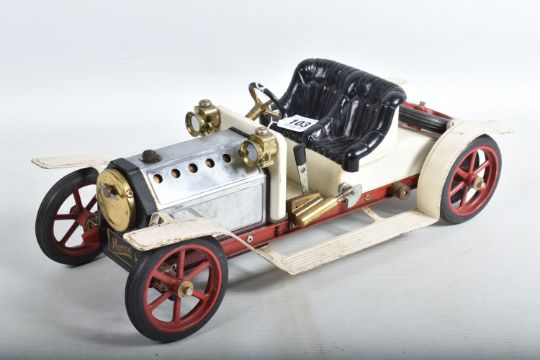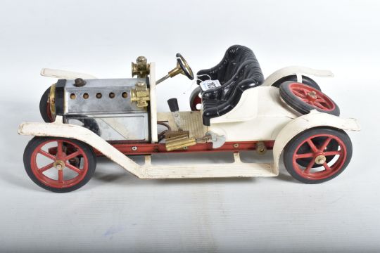 AN UNBOXED MAMOD LIVE STEAM ROADSTER, No.SR1, not tested, playworn condition with some paint loss, surface rusting, marking and wear, has been fired up and run but not for some time, appears largely complete, with burner tray but missing other accessories