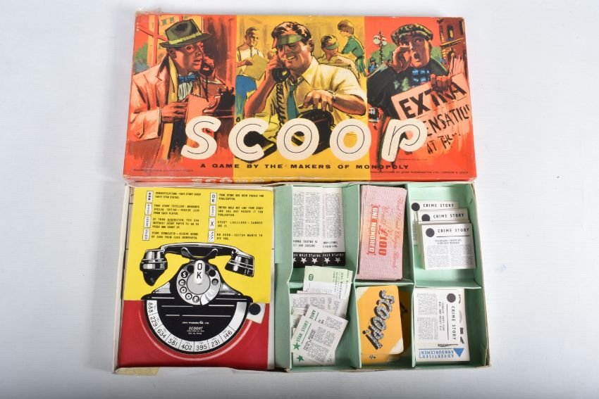 A QUANTITY OF VINTAGE BOARD GAMES, Waddington's 'Go', 'Spy Ring' and 'Scoop', Tri-ang 'High Finance', together with a Chad Valley Girder & Panel Build-A-Home & Subdivision Set, No.G335R, contents of sets not checked but all appear largely complete, some damage, marking and wear to boxes (5)