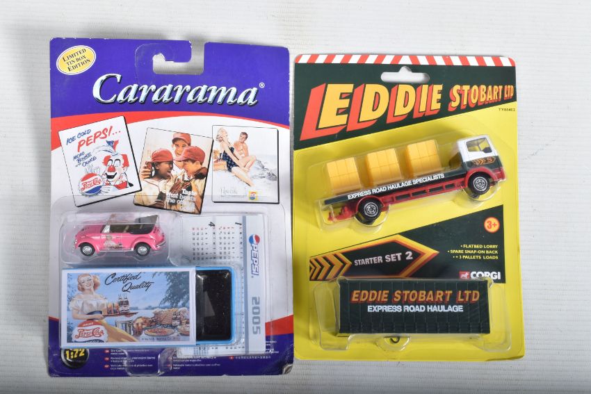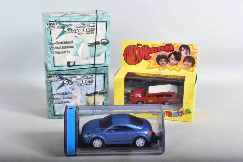 A QUANTITY OF ASSORTED BOXED MODERN DIECAST VEHICLES, to include a collection of Corgi Classics Eddie Stobart vehicles, including A.E.C. Truck & Trailer, No.97369, with limited edition certificate, Corgi Classics 'Monkeemobile', No.CC52405, Matchbox Collectibles 'Pills, Potions and Powders' Special Edition Gift Set, Xonex limited edition Scooter models, Leading Edge battery remote control Audi TT (not tested), Corgi, Maisto, Cararama, Halsall, Lledo etc., all models appear in good condition and look to have hardly, if ever, been removed from boxes which are all complete but some have minor damage, marking and wear
