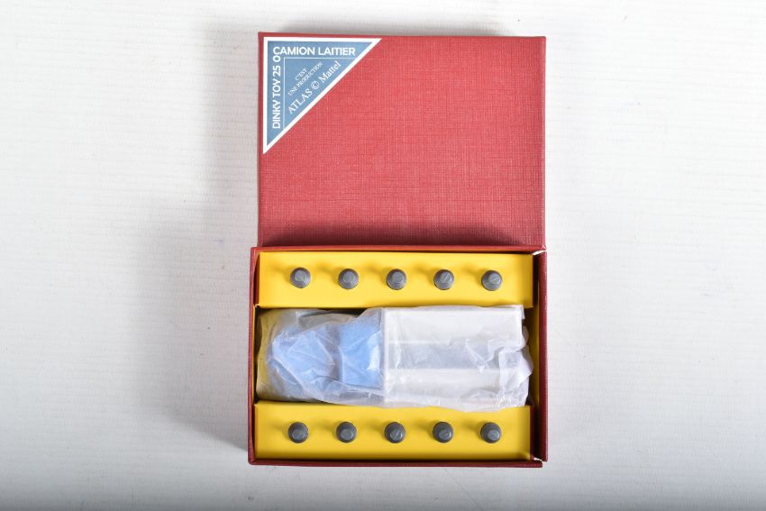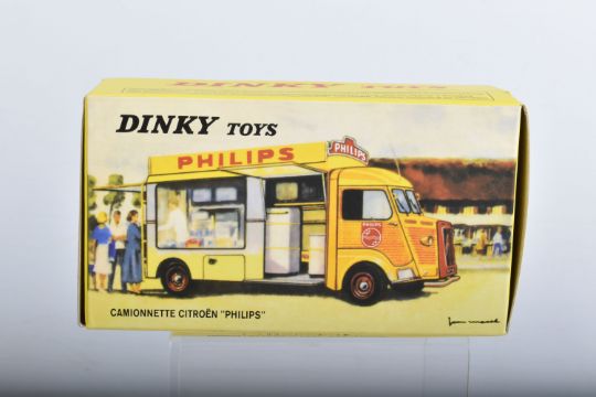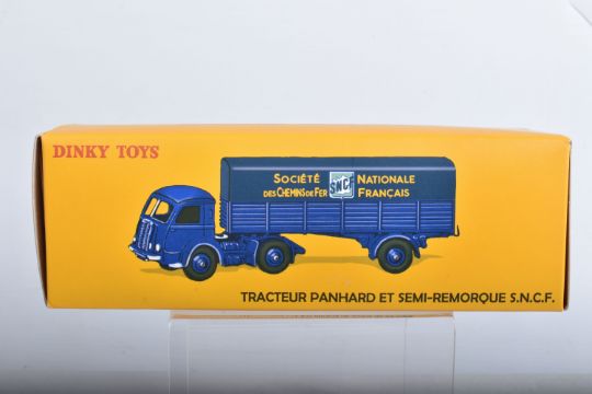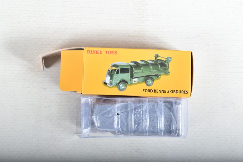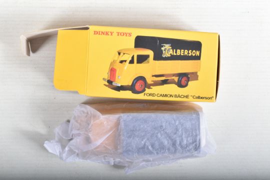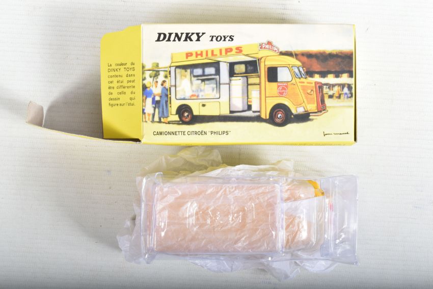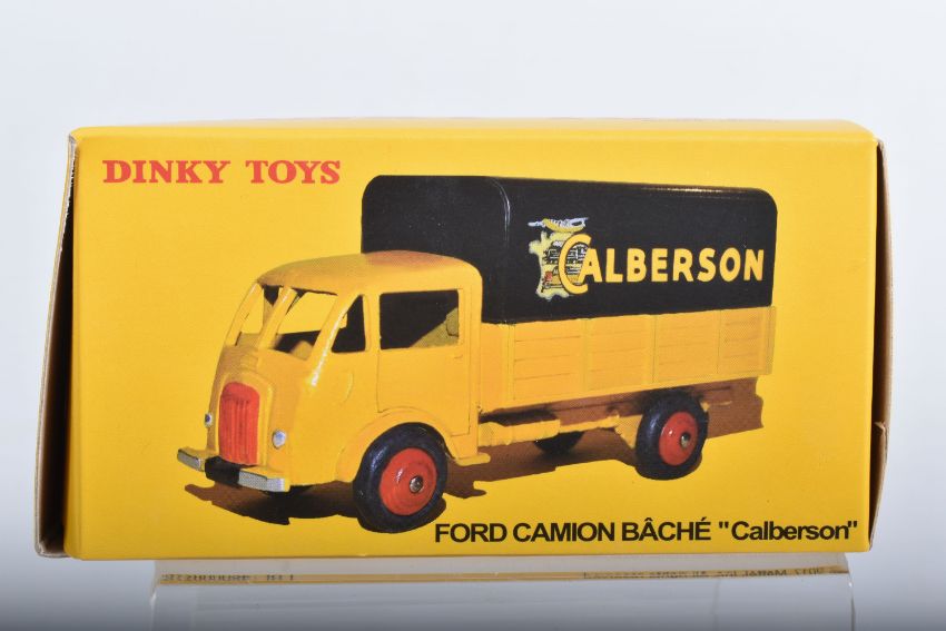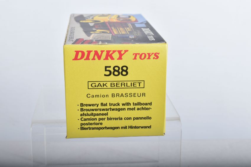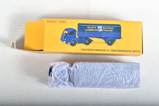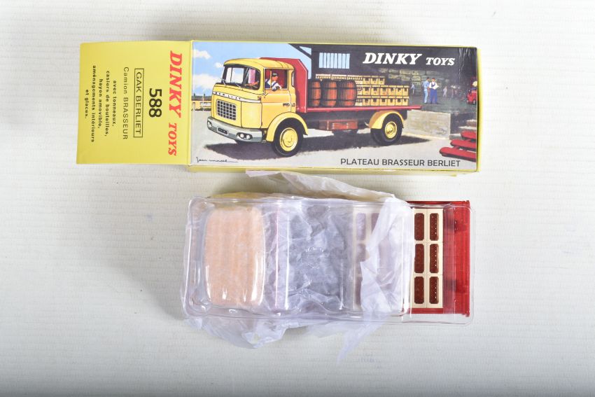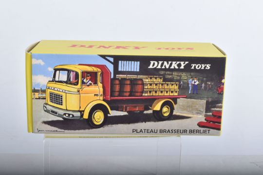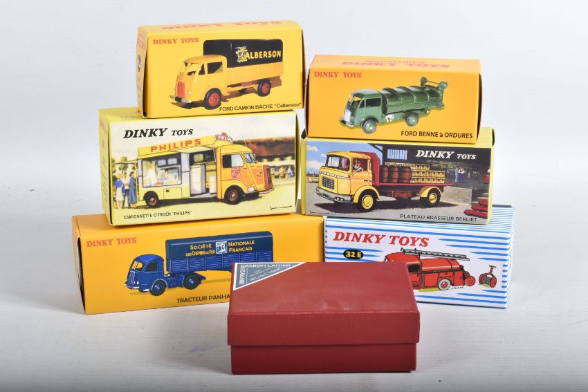 SEVEN BOXED ATLAS EDITIONS REPRODUCTION FRENCH DINKY TOYS LORRY/TRUCK MODELS, Ford Camion Bache 'Calberson' Version 1950, No.25JJ, Studebaker Milk Truck, complete with ten churns, No.25O, Ford Benne a Ordures, No.25V, Tracteur Panhard et Semi-Remorque S.N.C.F., No.32AB, Berliet Fourgon Incendie Premier Secours, No.32E, Citroen H series Camionette 'Philips', No.587 and Berliet Camion Plateau Brasseur, with crate and barrel load, No588, all in very good condition, look to have hardly, if ever, been removed from boxes, majority wrapped in tissue paper, boxes are all complete some with minor marking and wear