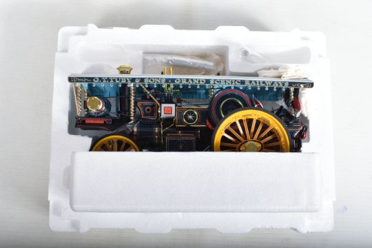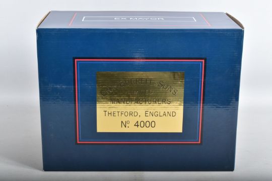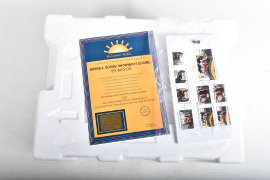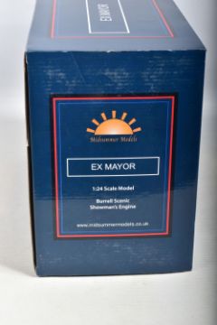 A BOXED MIDSUMMER MODELS EX MAYOR 1:24 SCALE BURRELL SCENIC SHOWMANS ENGINE, numbered 4000, , included in box are some instructions and a certificate numbered d 303 of 500, to the side of outer box reads ' Chas. Burrell & Sons Limited Manufacturers Thetford, England No. 4000', models appears to be in good condition although contents has not been checked for its completion, housed inside its polystyrene packing and outer cardboard box, outer box is mostly in good condition some light dents and scratches , scuffs to sharp edges and corners,