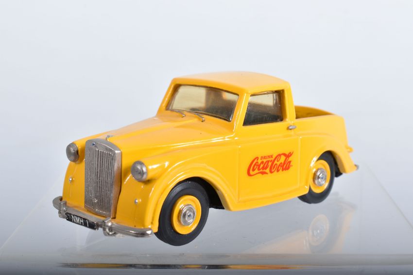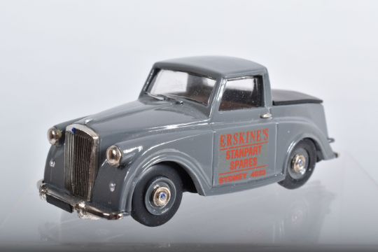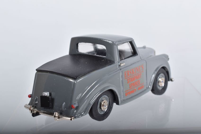 FOUR BOXED TRIUMPH MAYFLOWER MODELS, all are 1/43 scale models, saloon cars by Apollo Models and Illustra Models, Pick-Up's/Utes by Illustra in Coca-Cola and Erskine's Spares, Sydney liveries, with a boxed Lansdowne by Brooklin 1/43 scale 1954 Triumph Renown saloon model, all appear complete and in very good condition, boxes with minor damage, marking and wear (5)