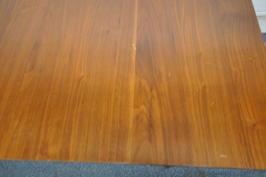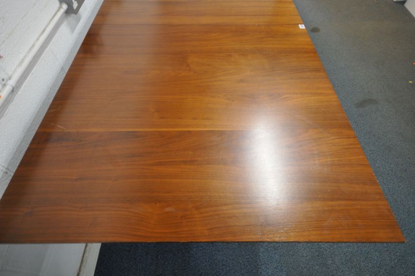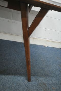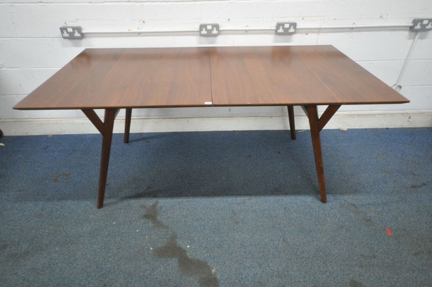 WEST ELM, A MID CENTURY TEAK EXTENDING DINING TABLE, raised splayed tapered legs, maximum extension 239cm x closed length 183cm x depth 97cm x height 78cm, with one additional leave (condition report: marks, scuffs, light scratches, other signs of wear and usage)