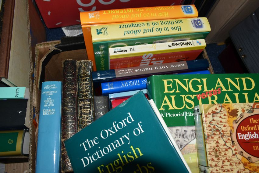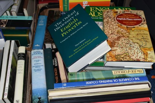 SIX BOXES OF BOOKS IN VARIOUS SUBJECTS, to include psychology, cats, Jane Austen novels, Thomas Hardy novels, Alice in Wonderland, exercise and health, etc. (sd) (6 boxes)