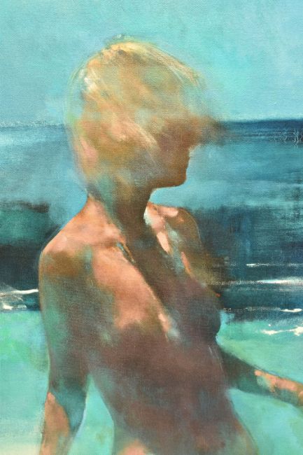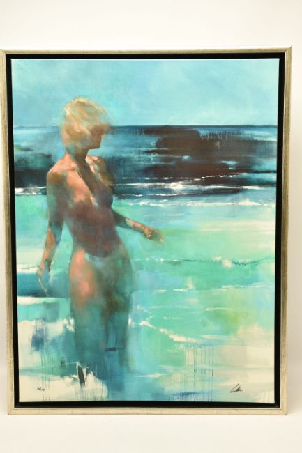 BILL BATE (BRITISH 1962) 'SIROCCO', a signed limited edition print on canvas, depicting a semi-nude female figure in the sea, 16/95 with certificate, approximate size 76cm x 58cm, frame size 82cm x 63cm, Condition Report: small amount of damage to bottom left corner edge of the frame