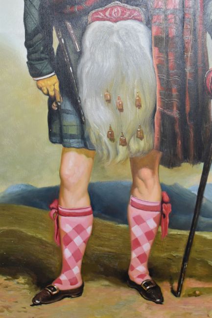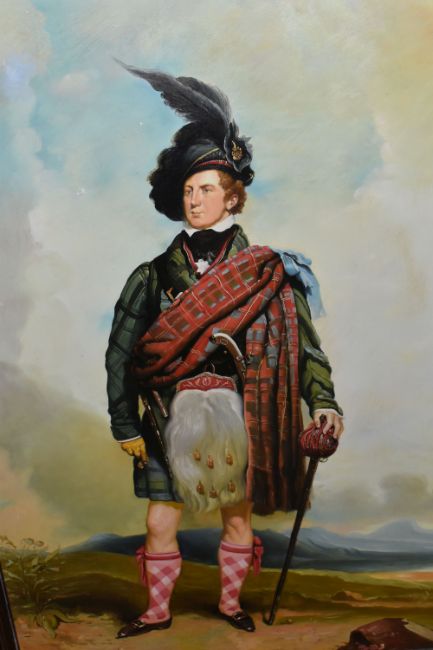 AFTER MARTIN ARCHER SHEE 'JAMES MUNROE MACNABB', an unsigned full length portrait reproduction oil on canvas, approximate size 89cm x 59cm, frame size 135cm x 104cm, Condition Report: paint flaking to the sky