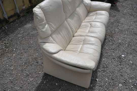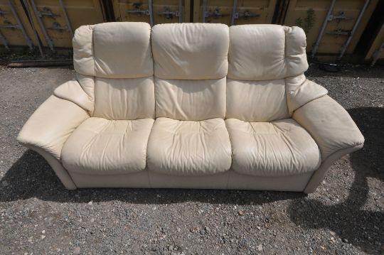 AN EKORNESS STRESSLESS THREE SEATER RECLING SOFA, length 210cm x depth 72cm x height 100cm (condition report: general signs of wear and usage)