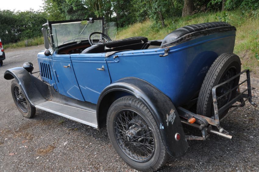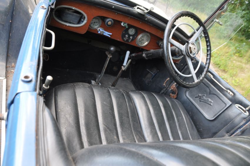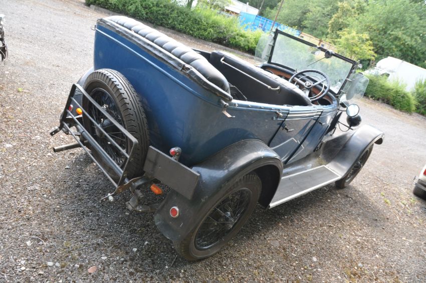A 1930's AUSTIN SIX OPEN TOURER FOUR SEATER CAR, in blue, Restoration project with side screens but no soft top, no Registration plates fitted, plates under bonnet states Car No STS-462-6 and Chassis No 6783001/L6, straight six engine, four speed manual gearbox, black vinyl bench seats front and back, odometer reads 27215 miles (unwarranted) NO KEY, NO V5C (Condition report: not started, no cranking handle, some paint losses) PLEASE NOTE: BUYERS PREMIUM IS CHARGED AT 10% + VAT PLUS ANY ONLINE CHARGES