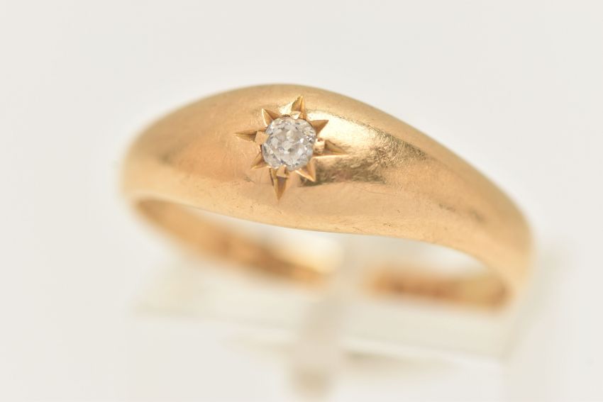 EARLY 20TH CENTURY 18CT GOLD DIAMOND RING, a single old cut diamond, prong set in a yellow gold star setting, hallmarked 18ct Chester 1906, ring size Q leading edge, approximate gross weight 4.2 grams, (condition report: general moderate wear, overall condition good)