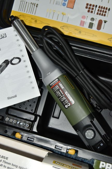 A PROXXON LONG NECK STRAIGHT DRILL GRINDER, UK plug, (condition report: new in box, not tested, we cannot guarantee the working order of this product)