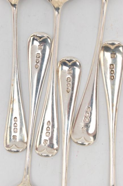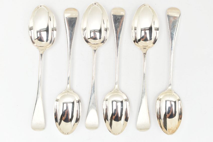 SIX LATE VICTORIAN SILVER DESSERT SPOONS, all with hallmarks for London 1894, approximate total weight 284.6 grams, 9.1 ozt
