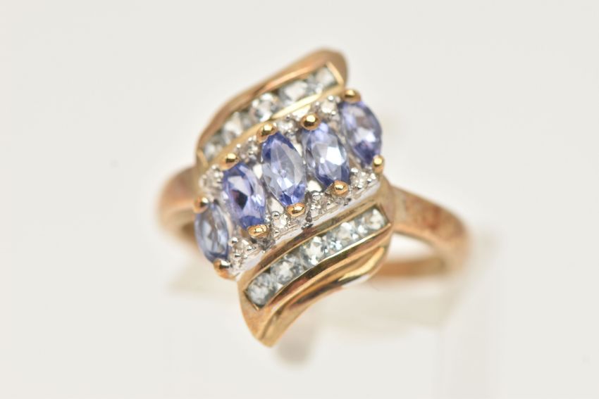 A 9CT GOLD GEM SET DRESS RING, a multi gem set ring, yellow gold mount, hallmarked 9ct Birmingham, ring size M, approximate gross weight 2.8 grams (condition report: general moderate wear, nicks to some of the stones, all stones currently intact, overall condition good)