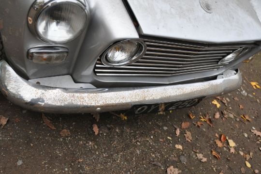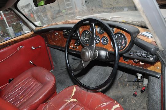 A 1966 BRISTOL 409 TWO DOOR SPORTS SALOON CAR in two tone silver and grey with a 5211cc Chrysler V8 engine, a TorqueFlite automatic push button gearbox, red leather interior, one set of keys, V5C present, 6 former keepers, first registered 13th December 1966 under number plate OYY 25D, odometer reads 102,554 miles (unwarranted) two folders containing service manuals and some receipts (Condition Report: Battery flat, engine and gearbox not tested, interior condition good apart from splits and losses to leather of drivers seat, paint bubbling and rust to bodywork, underside not checked, ignition and other wiring loose under dashboard, vehicle does roll) (BUYERS PREMIUM IS CHARGED AT 10% + VAT PLUS ONLINE PLATFORM FEES)